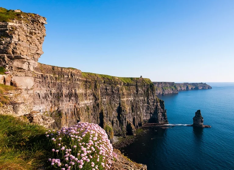 Cross into County Clare to discover the unique limestone landscapes of the Burren, shaped by nature and history over thousands of years. The day continues along the Clare coast, with time in Doolin for traditional music, coastal walks, and a strong sense of Atlantic community.